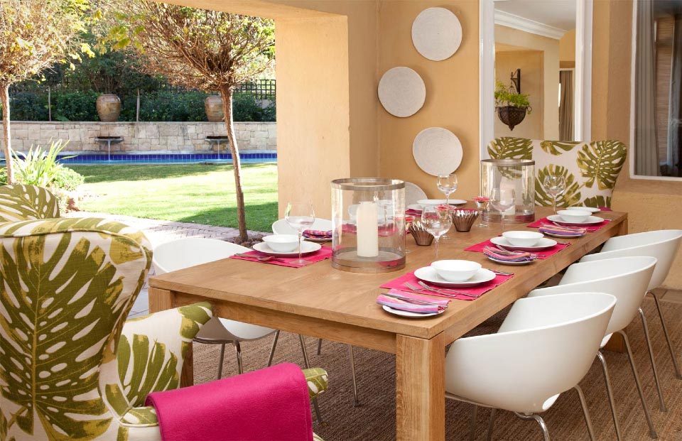 This Johannesburg patio was originally nothing more than a shell; an awkward area tacked on to the rest of the house. The idea was to transform it into a space which had all the comforts of an indoor dining room, but with the advantages of an outdoor entertaining area.