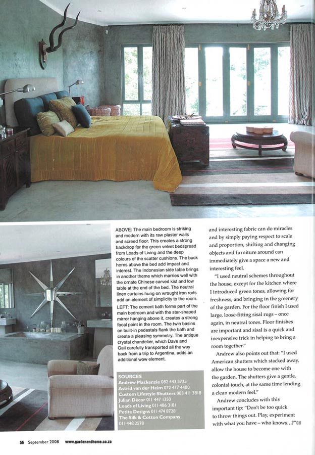 Andrew also points out that: “I used American shutters which stacked away, allow the house to become one with the garden. The shutters give a gentle, colonial touch, at the same time lending a clean modern feel.”