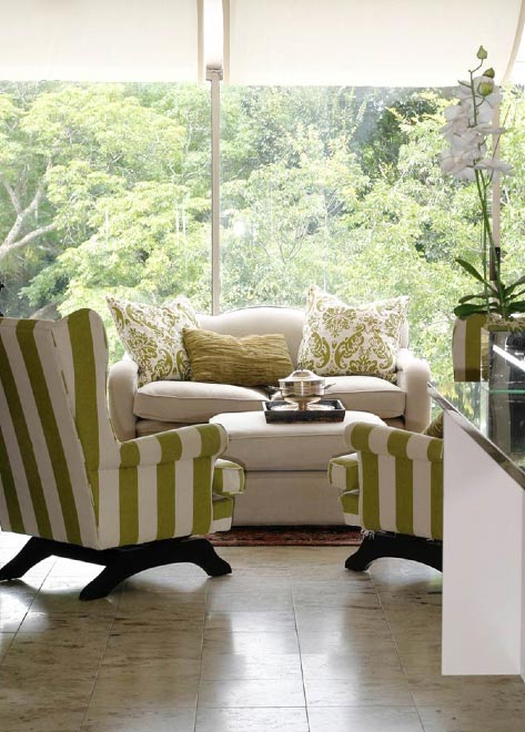 “I used neutral schemes throughout the house, except for the kitchen where I introduced green tones, allowing for freshness, and bringing in the greenery of the garden. For the floor finish I used, loose-fitting sisal rugs – once again, in neutral tones. Floor finishes are important and sisal is a quick and inexpensive trick in helping to bring a room together.”